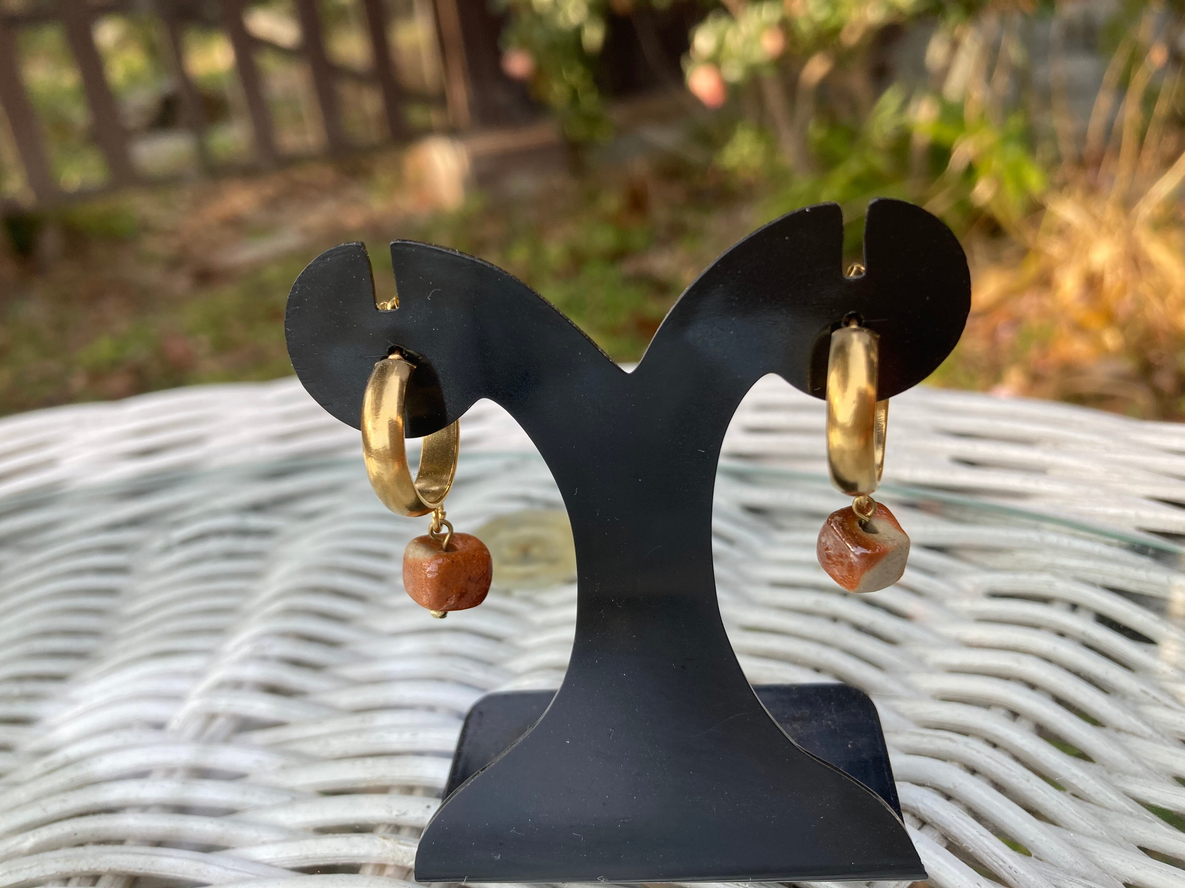 ゴールド金具に小さなキューブ型の備前焼ビーズを付けました。小ぶりでエレガントなピアスです。