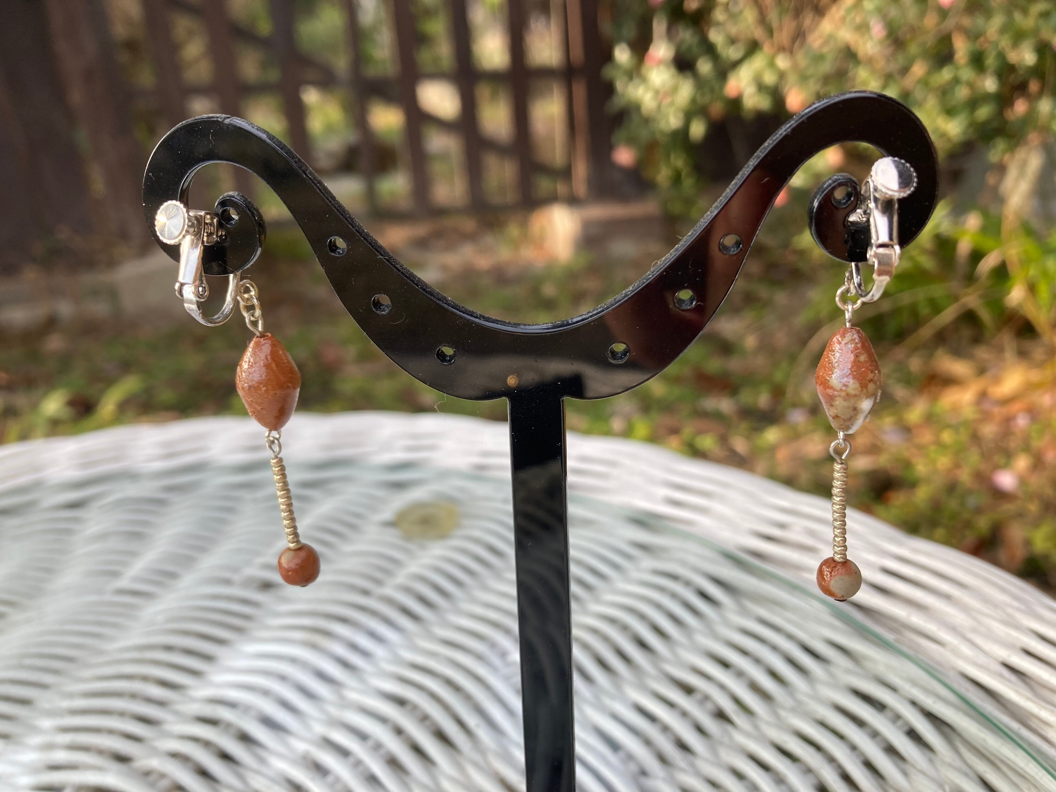 艶のある備前焼ビーズと小粒のシルバービーズの組み合わせ。イヤリングです。